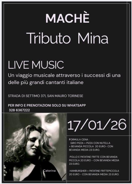 Un viaggio musicale emozionante attraverso i più grandi successi di Mina, una delle voci più iconiche della musica italiana. Con oltre dieci anni di esperienza nell'interpretazione del repertorio della Tigre di Cremona, Caterina Nuti vi accompagnerà in una serata speciale dedicata ai brani che hanno segnato la storia della canzone italiana