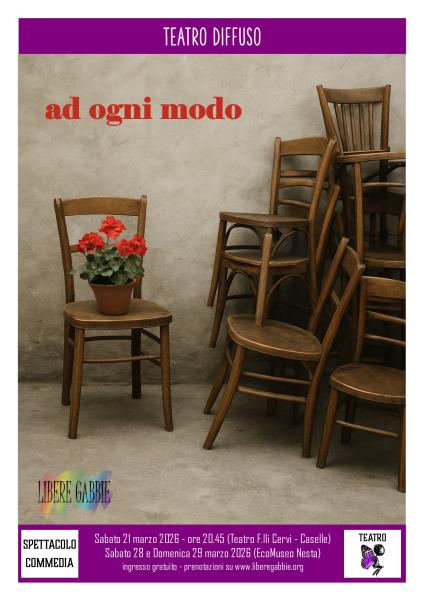 Ingresso gratuito, prenotazione obbligatoria su https://www.liberegabbie.org/event-details/ad-ogni-modo-teatro-di-caselle